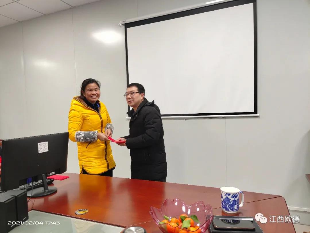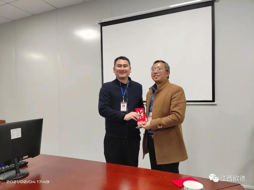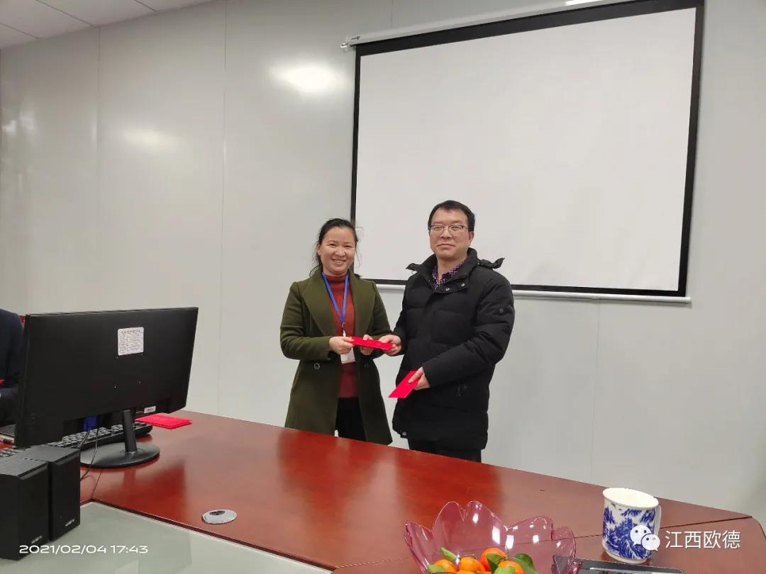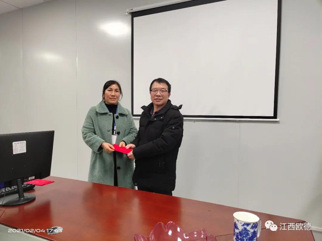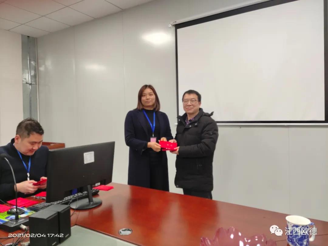 緊接著是進(jìn)入會(huì)議的高潮,頒獎(jiǎng)典禮。江西歐德醫(yī)療器材有限公司一直秉承愛國(guó)、愛民、誠(chéng)信、創(chuàng)新、共享、感恩的價(jià)值觀。陳友平董事長(zhǎng)對(duì)歐德醫(yī)療2020年所有為公司奮力拼搏的員工給予感恩和肯定,頒發(fā)了年終大獎(jiǎng)!