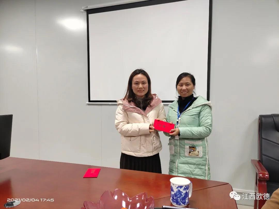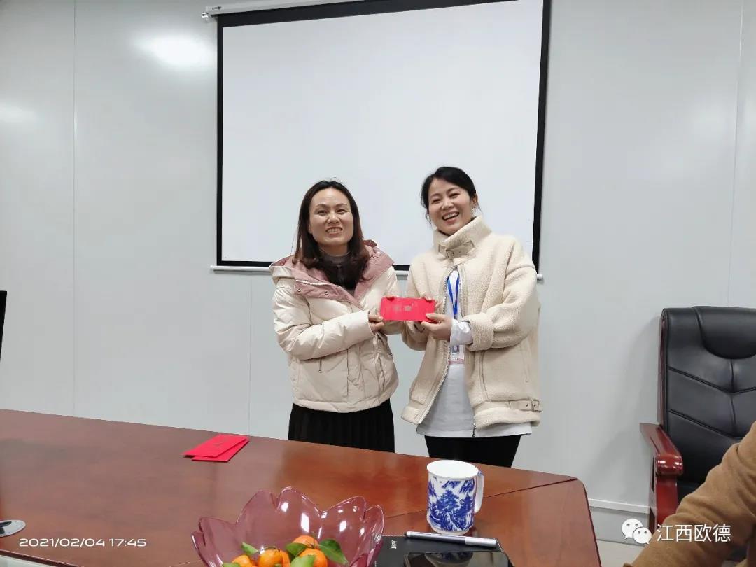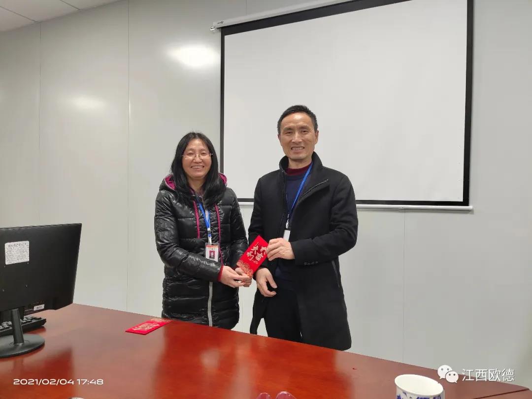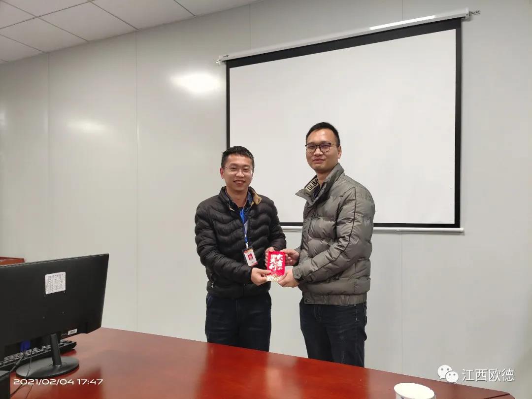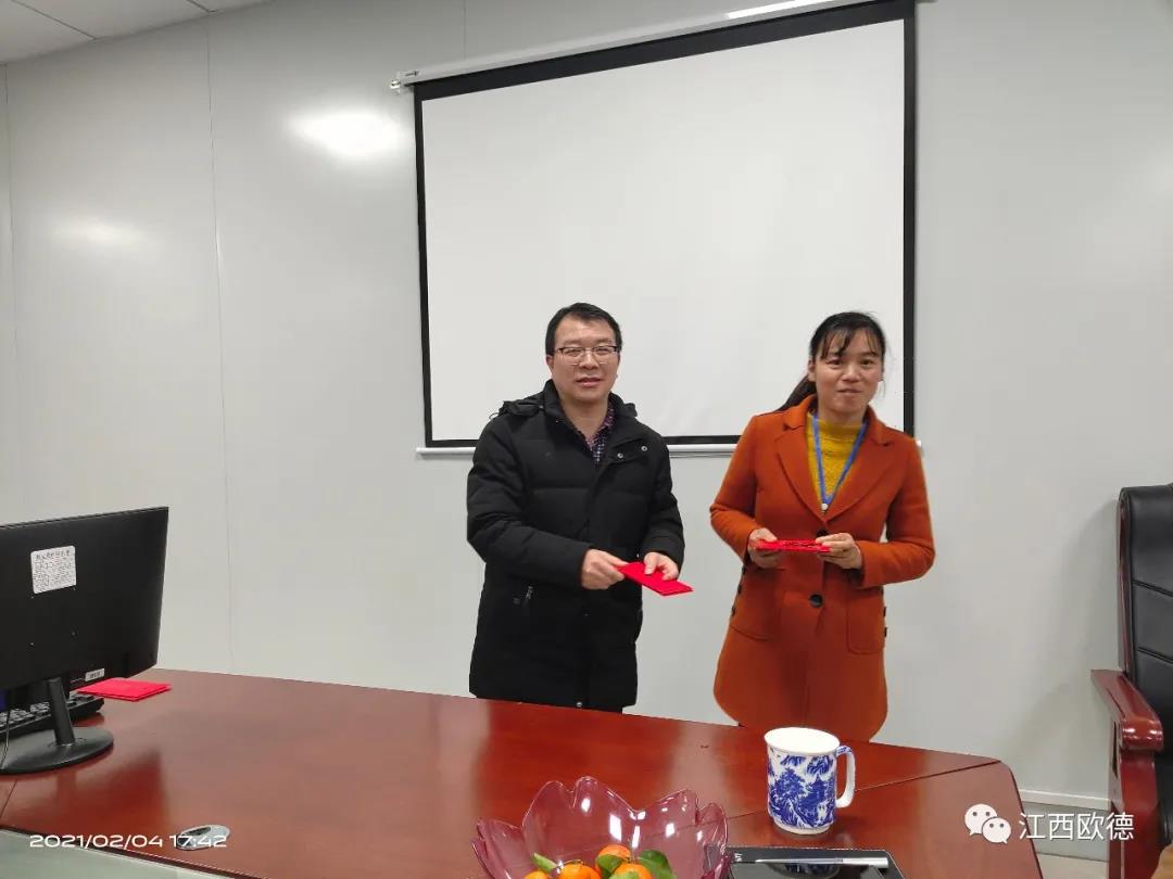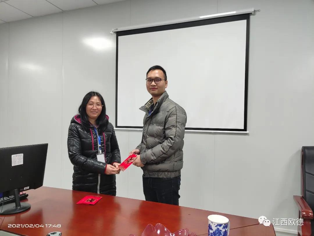 緊接著是進(jìn)入會(huì)議的高潮,頒獎(jiǎng)典禮。江西歐德醫(yī)療器材有限公司一直秉承愛國(guó)、愛民、誠(chéng)信、創(chuàng)新、共享、感恩的價(jià)值觀。陳友平董事長(zhǎng)對(duì)歐德醫(yī)療2020年所有為公司奮力拼搏的員工給予感恩和肯定,頒發(fā)了年終大獎(jiǎng)!