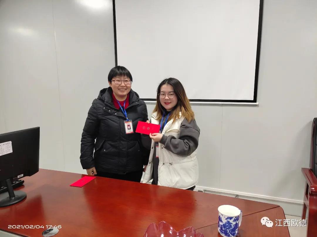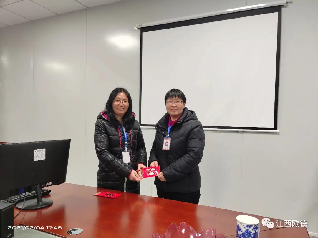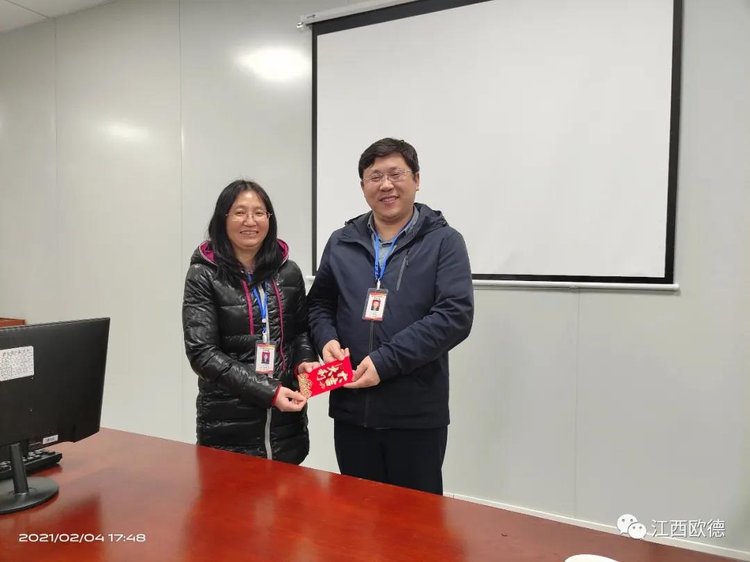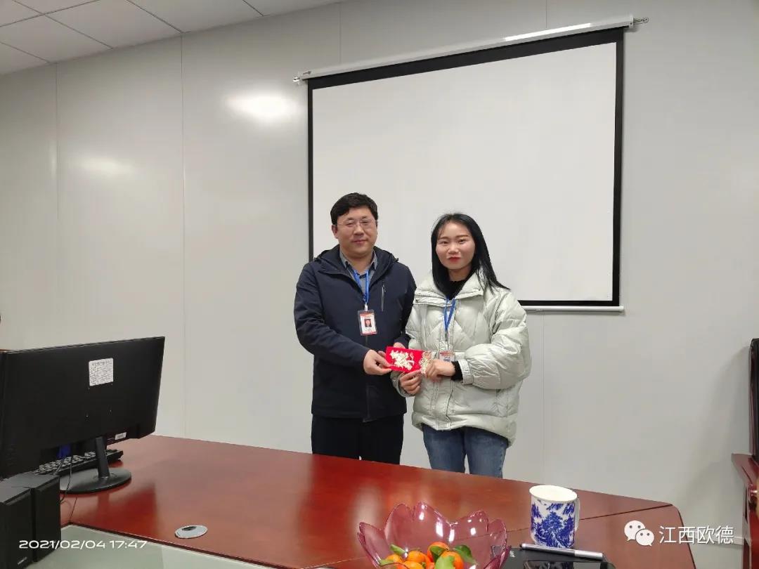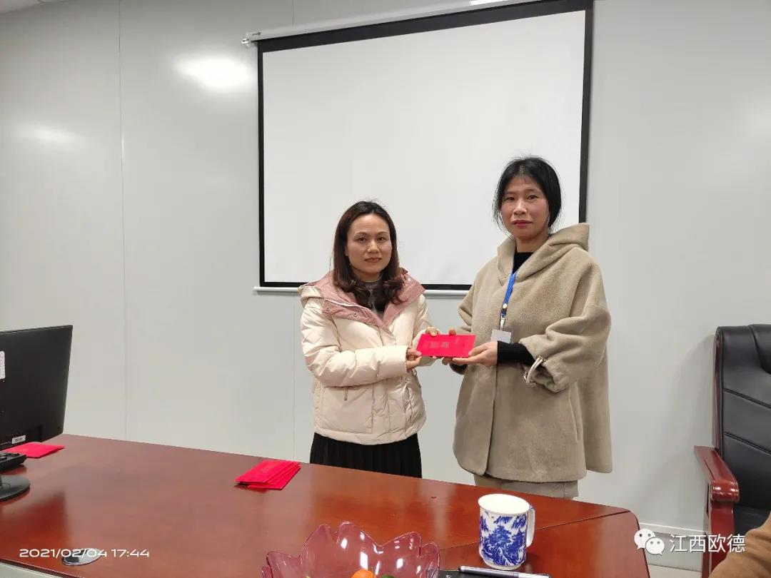緊接著是進(jìn)入會(huì)議的高潮,頒獎(jiǎng)典禮。江西歐德醫(yī)療器材有限公司一直秉承愛國(guó)、愛民、誠(chéng)信、創(chuàng)新、共享、感恩的價(jià)值觀。陳友平董事長(zhǎng)對(duì)歐德醫(yī)療2020年所有為公司奮力拼搏的員工給予感恩和肯定,頒發(fā)了年終大獎(jiǎng)!