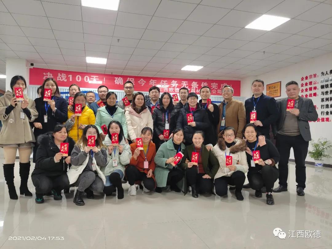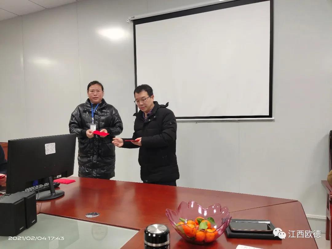 江西歐德醫(yī)療器材有限公司于2月4日下午13點(diǎn)整在會(huì)議室隆重召開了2020年年會(huì)暨頒獎(jiǎng)典禮,出席本次會(huì)議的有歐德醫(yī)療董事長(zhǎng)陳友平、總經(jīng)理胡偉及全體員工。