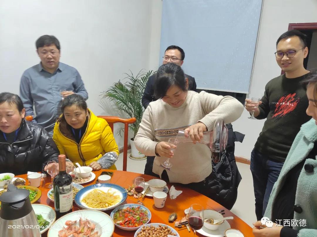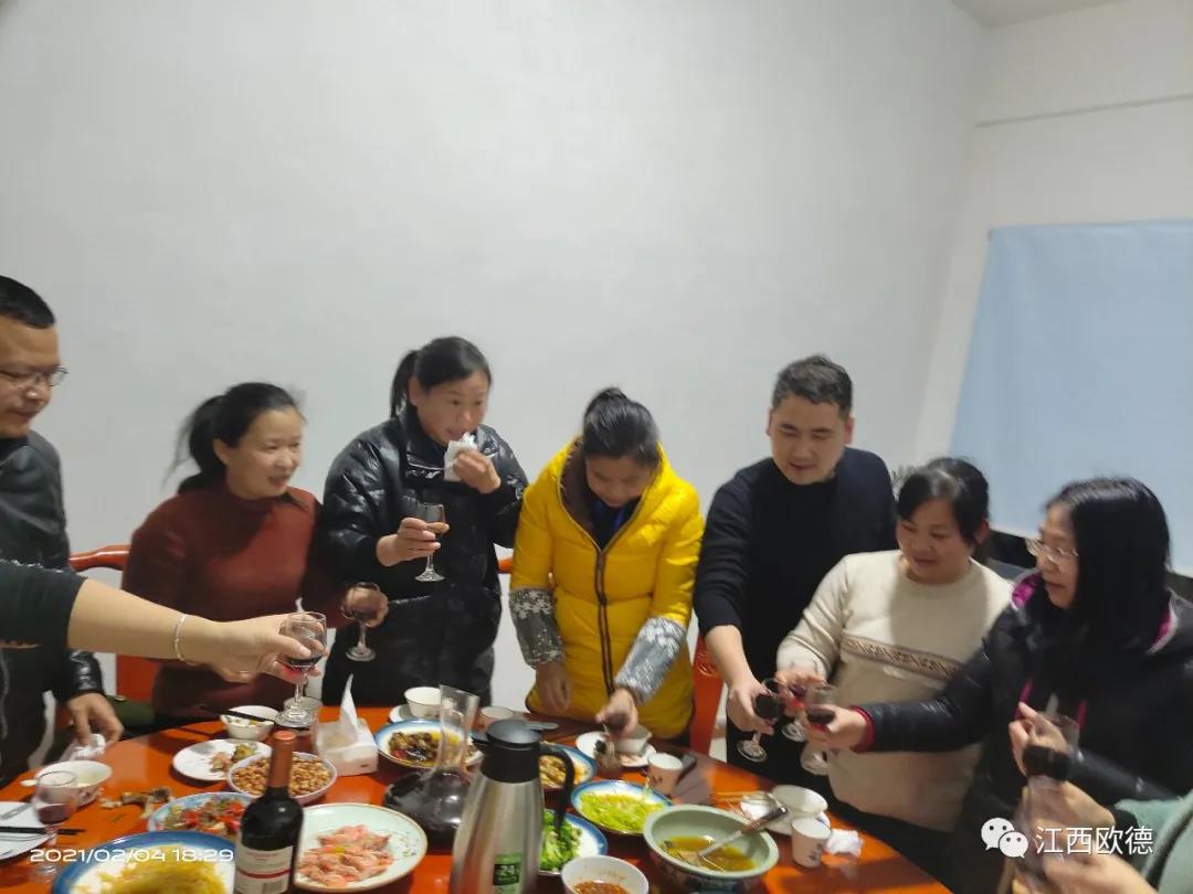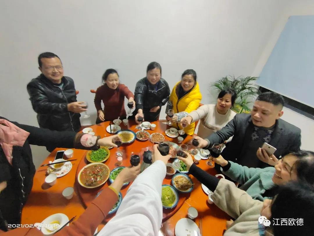會(huì)議結(jié)束后,歐德家人歡聚一堂,共同舉杯、共享晚宴,迎接2021新一年的美好未來!晚宴現(xiàn)場(chǎng)氣氛活躍,佳肴豐盛可口,美酒沁人心脾。
